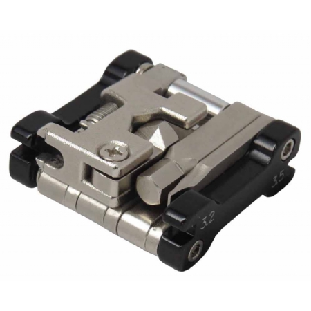 CNC'd MULTI TOOL 17 FUNCTION Hex:2/3/4/5/6/8mm Torx:T25 Screwdriver:PH1 & FL5 Spoke wrench:3.2/3.3/3.5/4.0mm Wrench:8/10mm Chain tool Valve core remover Color:black, silver, blue, gold, red Weight:106g