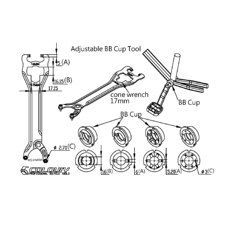BB remover, BB cup tool with 17mm cone wrench (CL2482)