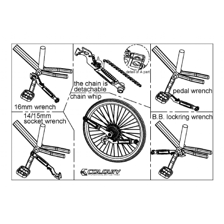 Mutifunctional wrench: chain whip, B.B. lockring wrench, Pedal wrench, 14/15mm socket wrench *the chain is detachable